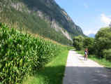 | Dnešní trasa vede opět podél Drávy do městečka Berg. Sjíždíme do Lienzu - zjišťujeme že je to pěkné turistické městečko a vyjíždíme dále podél vody. |